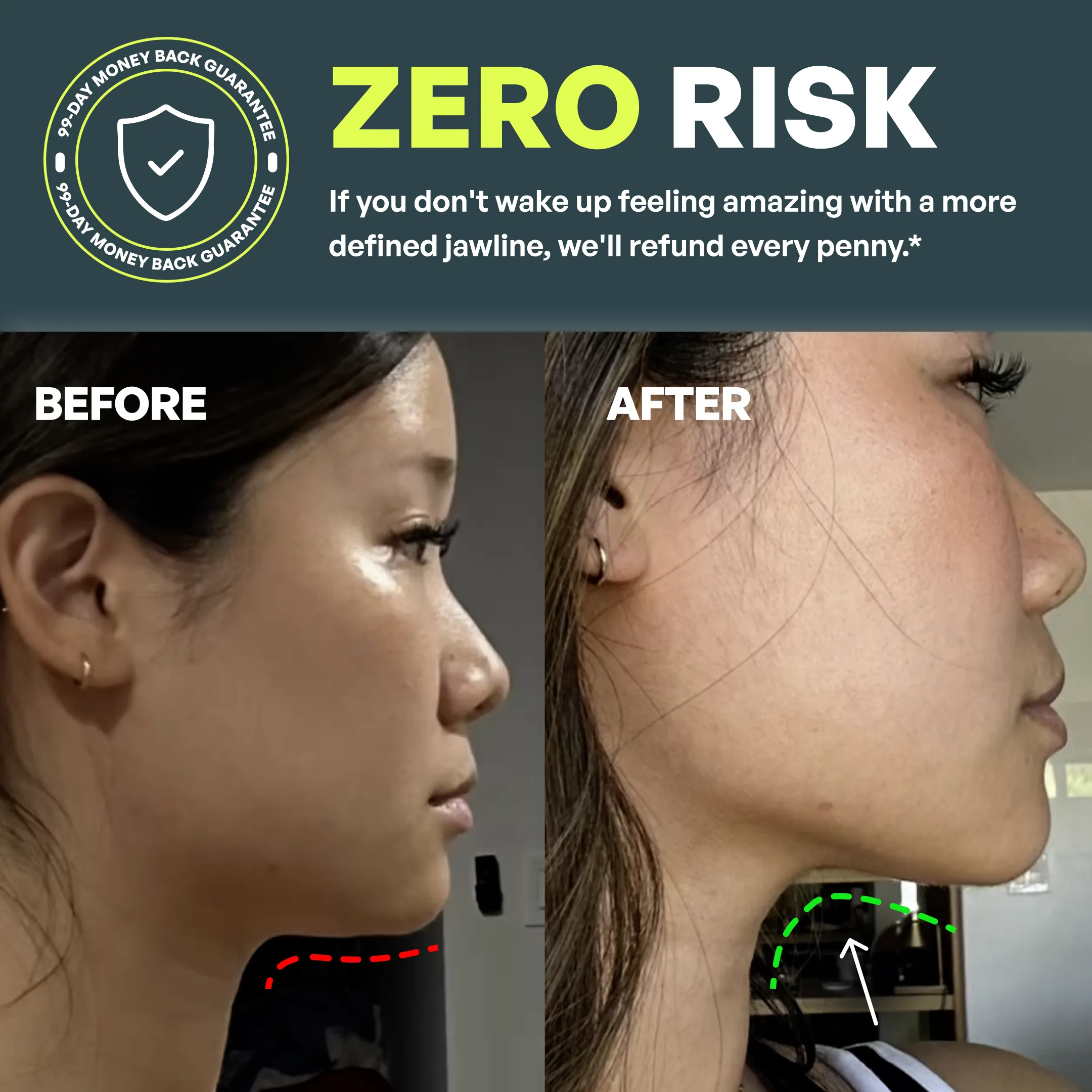 Noticeable jawline definition improvement