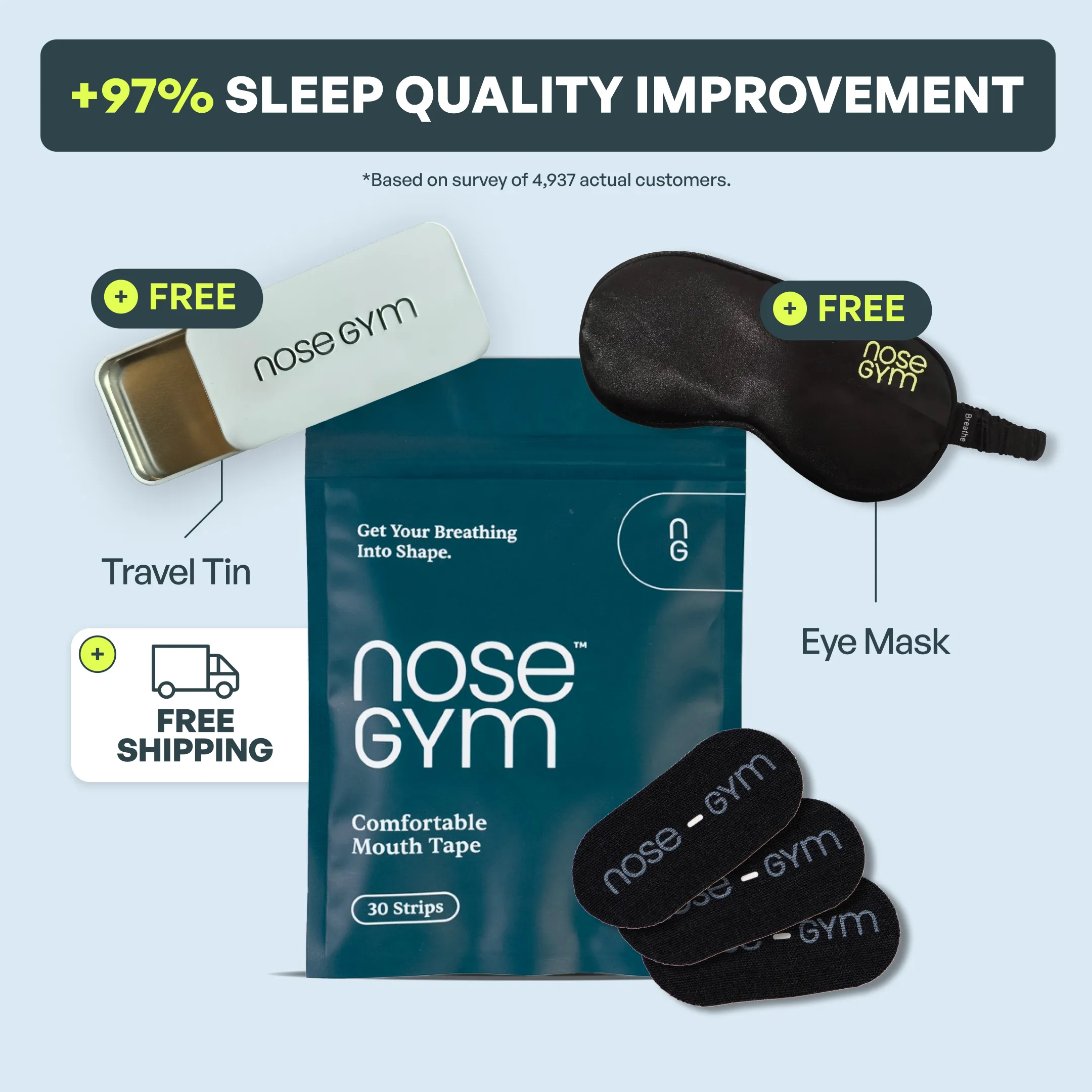 Nose Gym is not your typical mouth tape. It's next-generation sleep technology designed for comfort and results without the anxiety of traditional taping.